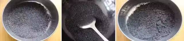 6 . 倒入打好的黑芝麻粉攪拌均勻。