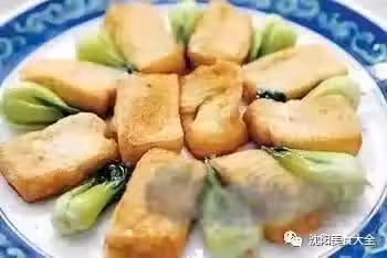 3、把菜膽用水稍微煮一下,煮的時候要放入油、鹽,讓它入味。然後放調味料把菜膽炒熟,起碟放在豆腐之間。