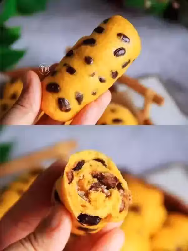 食材:南瓜 適量,中筋麵粉400克,酵母4克,蜜紅豆 適量,白糖 20克