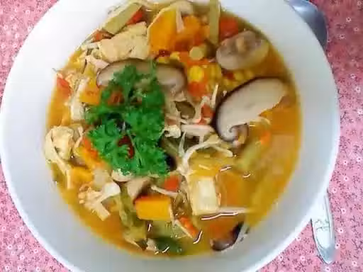 香菇1朵、金針菇1小把、豆皮1片、四季豆5-6根、小番茄10顆、胡蘿蔔半根、任何葉菜類適量、紅醬2大匙、玉米2小塊、腰果10粒