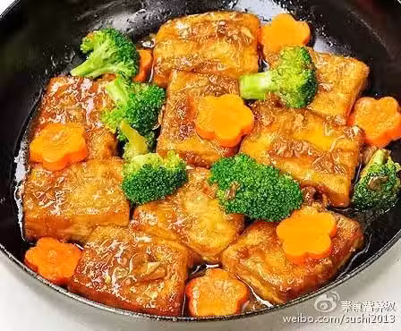 食材:南豆腐350克,胡蘿蔔50克,西蘭花100克,薑蓉1大匙,玉米澱粉20克,生抽,砂糖,素蚝油,,高湯