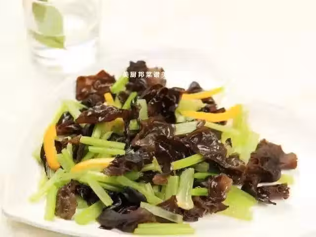 食材:芹菜、木耳、油、鹽。