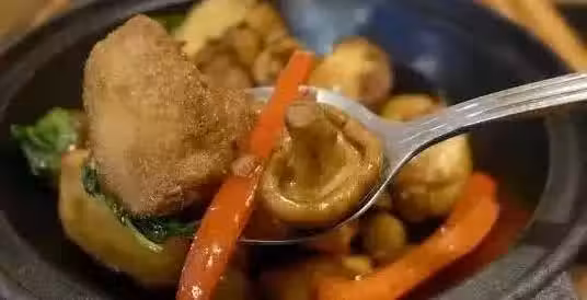 材料:香菇 、猴頭菇、九層塔、姜、紅辣椒、甜椒、麻油、冰糖、素蚝油
