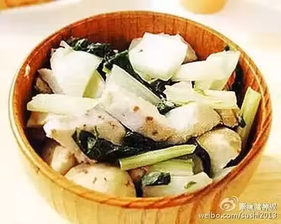 1、白菜、芋頭分別洗凈,芋頭去皮切小塊,大菜切小段。