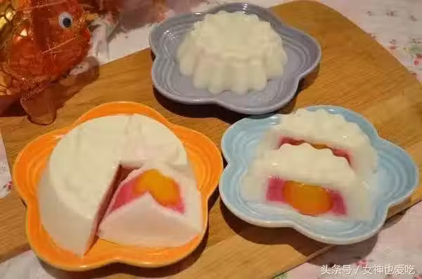 用料:晶露果凍粉 175克 水 450克 火龍果陷 180克 香橙陷 180克
