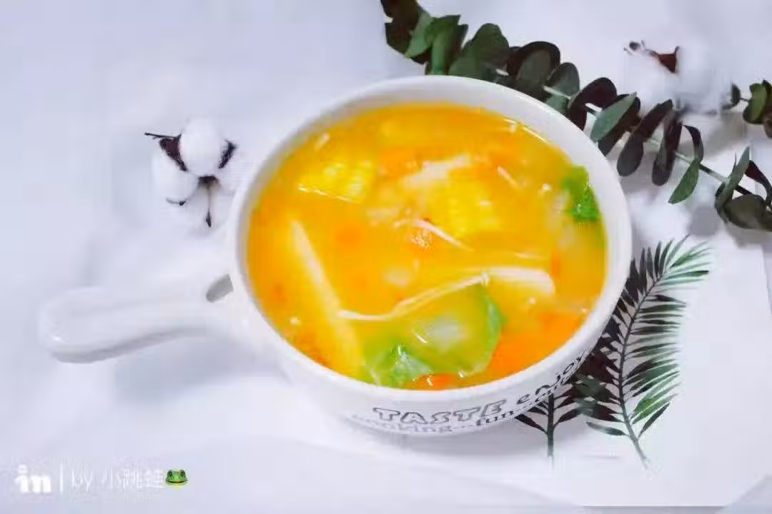 1. 番茄去皮切碎,胡蘿蔔切丁,玉米切塊;2. 金針菇洗乾淨,年糕泡好;3. 鍋熱少油,倒入番茄大火翻炒;4. 繼續加入胡蘿蔔大火翻炒幾分鐘;5. 加入適量清水大火燒開;6. 加入玉米和金針菇。加入鹽調味。大火煮10分鐘;7. 開鍋後加入年糕大火煮5-8分鐘煮開即可;8. 最後加入幾片捲心菜。