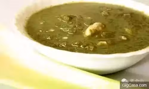 將芹菜和少許水置入攪拌機里打至細滑;徐徐的倒入煲里。