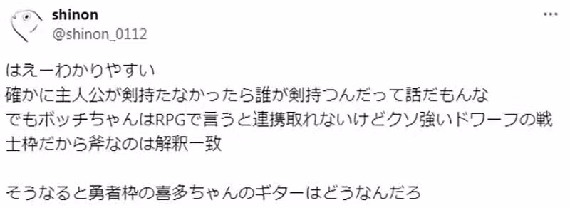 「美少女樂團動漫讓女生拿萊斯保羅吉他,就跟『女生揮舞大斧好可愛!!!』是同樣的感覺吧。」