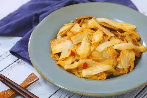 娃娃菜400g,豆乾240g,生抽10g,豆瓣醬20g,薑末、鹽、蔬果粉適量