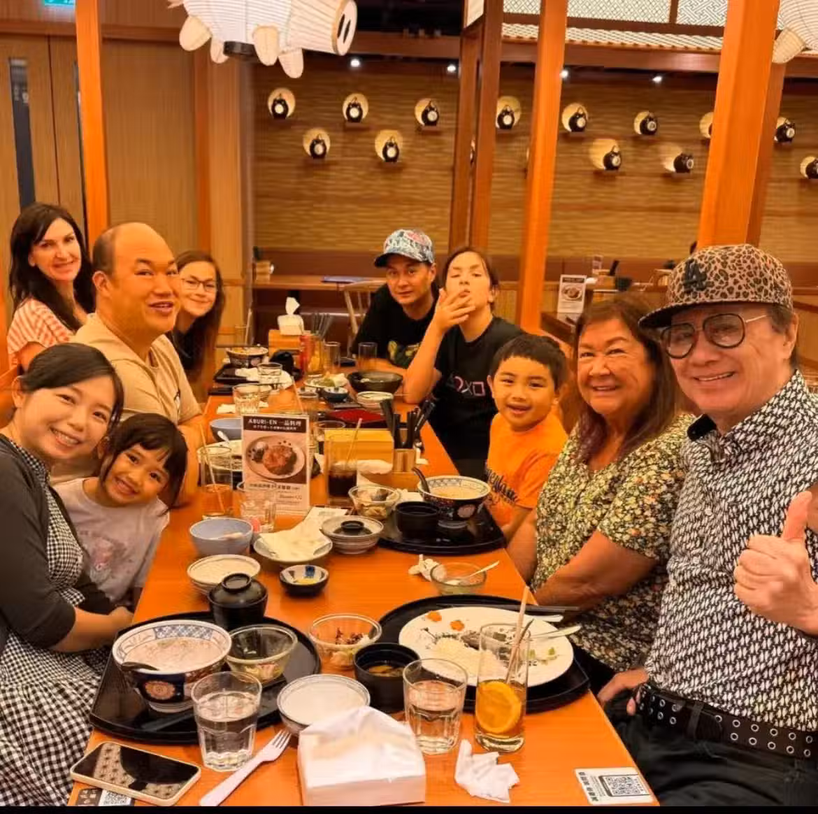 近日,許冠傑在社交平台分享全家福,獲家人為他慶祝76歲生日。照片中可見,許冠傑大兒子許懷欣兩名13歲雙胞胎混血兒子許朗(Juilan)及許俊(Oliver)雖然坐著,但都看到肩位越來越橫,與父母坐在一起,身高似乎已追上父母。