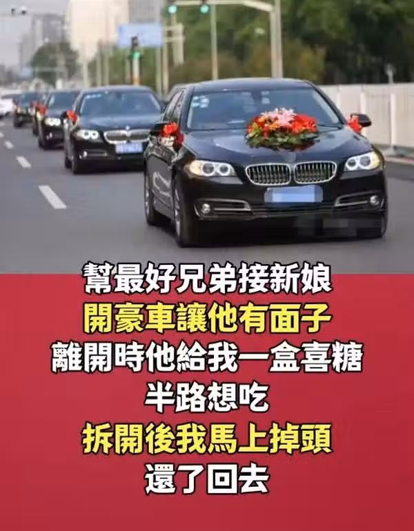 幫最好兄弟接新娘「開豪車讓他有面子」! 離開時他給我一盒喜糖,半路想吃「拆開後我馬上掉頭」還了回去