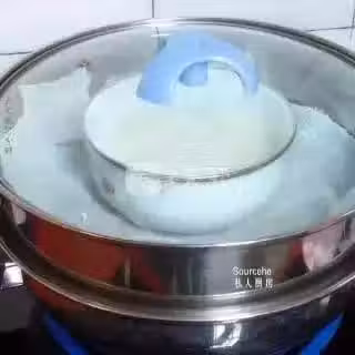 7、製作月餅皮2:大火蒸約20分鐘,即可,PS:具體看各種的鍋和火的大小,為了防止水蒸氣進入,我用保鮮膜包裹了