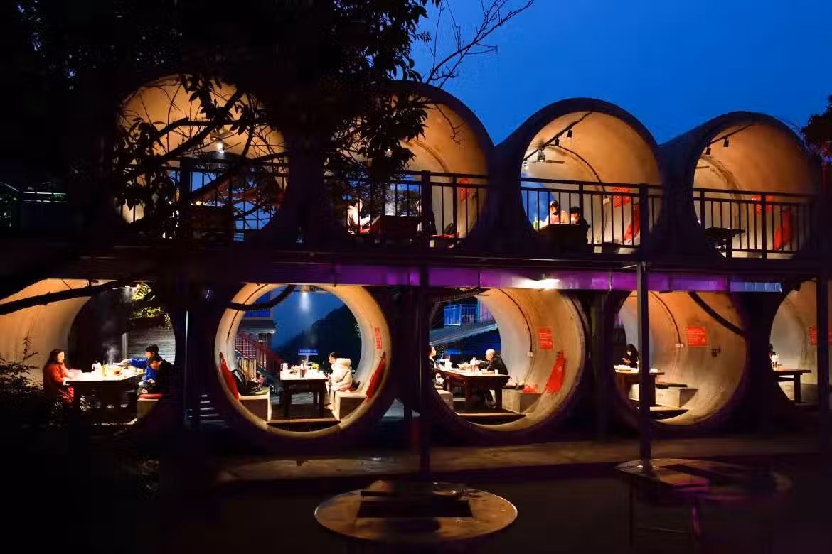 真正的下館子!農莊別出心裁,把「水泥管」改成餐廳和民宿,吸引無數人狂喊:想去打卡