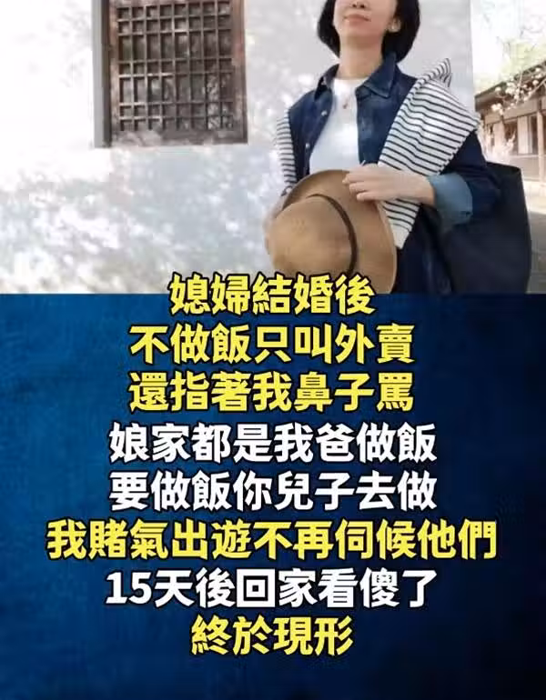 媳婦結婚後,不做飯只叫外賣,還指著我鼻子罵「娘家都是我爸做飯,要做飯你兒子去做!」,我賭氣出遊不再伺候他們,15天後「回家看傻了」:終於現形!