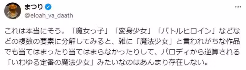 「查了一下《魔法少女拉拉貝爾》好像是最早出現魔法少女這個詞彙的作品,不過所謂的王道究竟應該怎麼定義呢?」