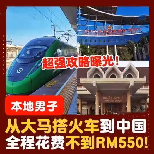 不必乘飛機,途徑泰國和寮國,大馬男子搭火車直達中國!花費不到RM550!