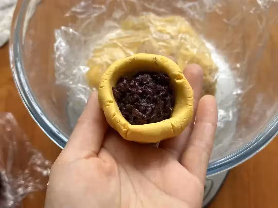 4、用虎口慢慢封好接口,搓圓,用牙籤劃出紋路。