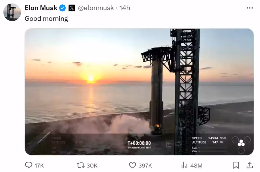 馬斯克還表示,他們剛剛檢查了星艦助推器,臂架已經將它放回發射架上。一切看起來都很棒。雖然一些外部發動機噴嘴因高溫等原因發生了變形,但這些問題很容易解決。