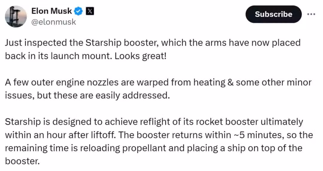 首次!SpaceX完成「筷子夾火箭」式星艦回收,馬斯克8年前設想成真