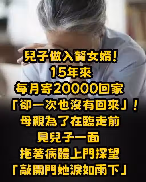 兒子做入贅女婿!15年來每月寄20000回家「卻一次也沒有回來」!母親為了在臨走前見兒子一面,拖著病體上門探望「敲開門她淚如雨下!!」