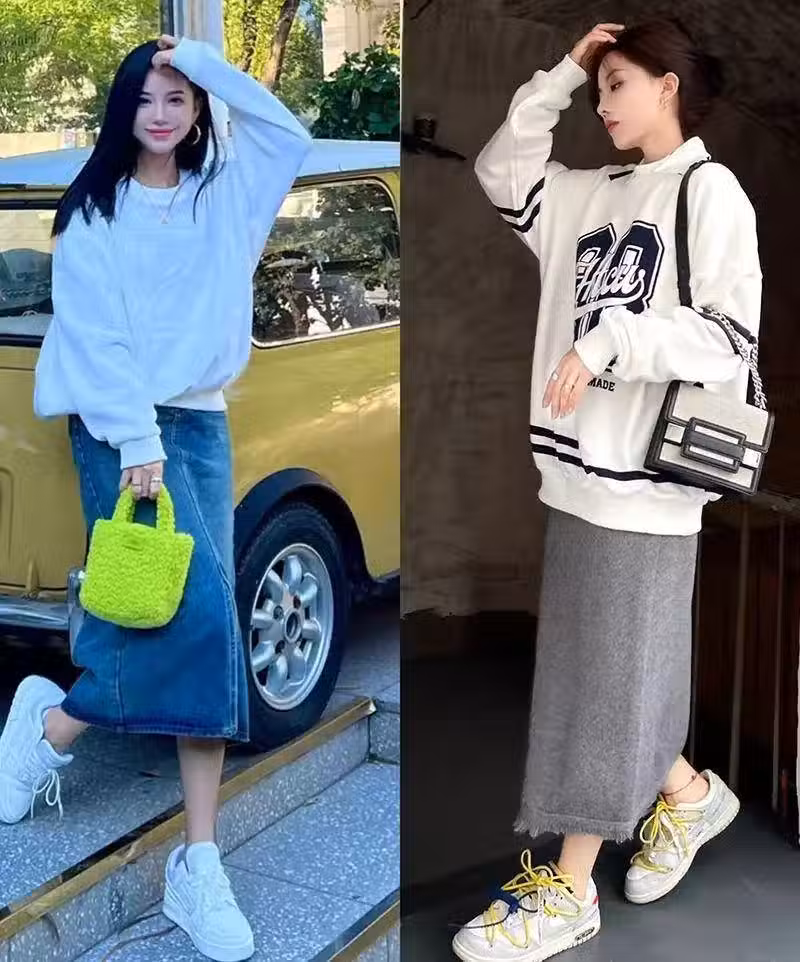 春季的裙子在飄逸感上可以加強一下,像百褶裙和印花裙,都是打造溫柔氣質的裙款,即使搭配簡單的純色衛衣,也絲毫不影響整體的浪漫氣息。