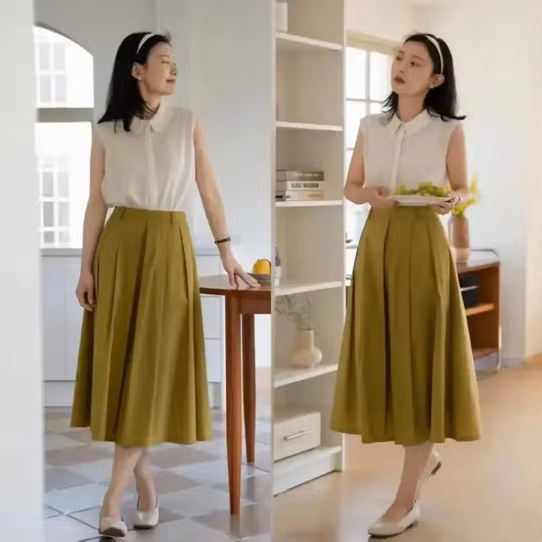 也可以像下面這位博主一樣,選淺灰色的淺口平底單鞋,搭配白色的半身裙,加上黑款短袖上衣,這樣的穿衣打扮,通勤時髦,穿去上班,逛街,約會,或者和閨蜜約下午茶,再適合不過了。