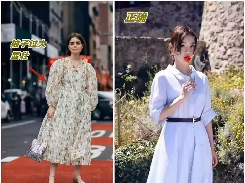 泡泡袖雖然也是襯衫裙的熱門設計,但是泡泡袖太膨脹,容易顯得肩寬背厚,我們日常穿,儘量選擇袖子能夠貼合手臂的設計。