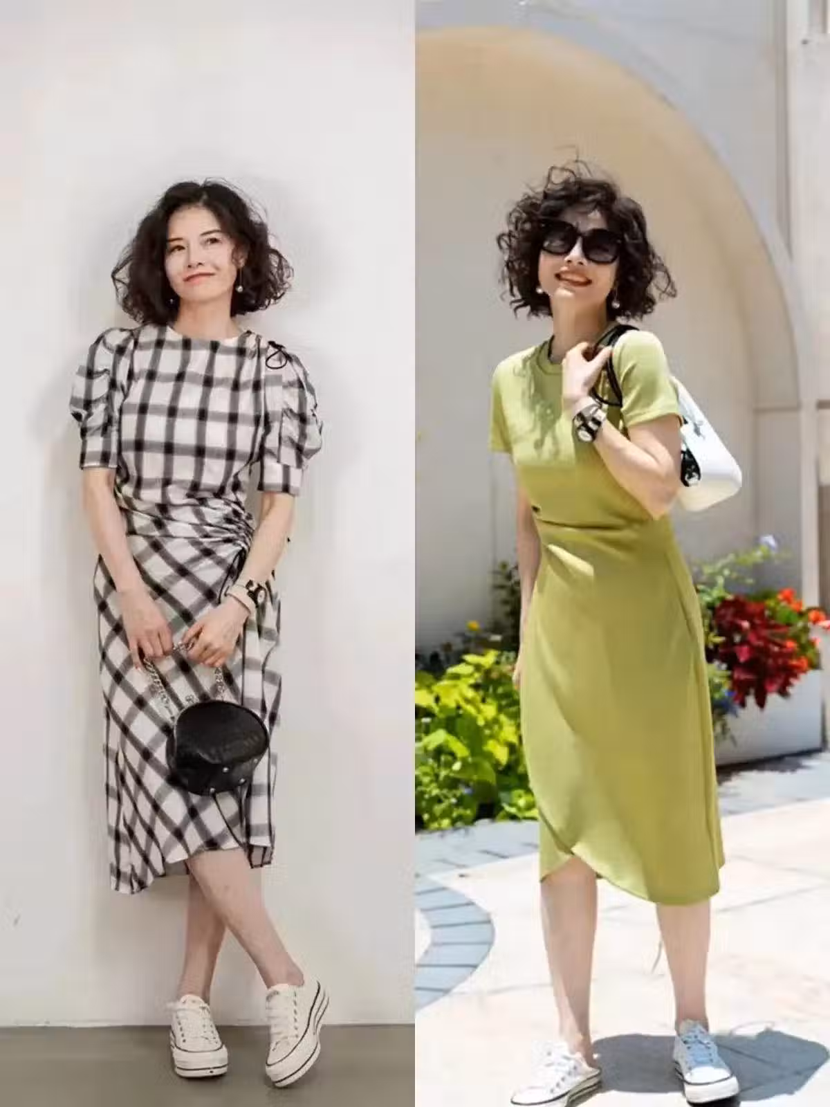 當夏季用裙裝凹造型時,短髮媽媽們可以用上面這類優雅洋氣的時尚裙裝取代奶奶裙,在提升時髦度同時,與短髮相互輝映,也顯得形象越發俏皮而養眼。