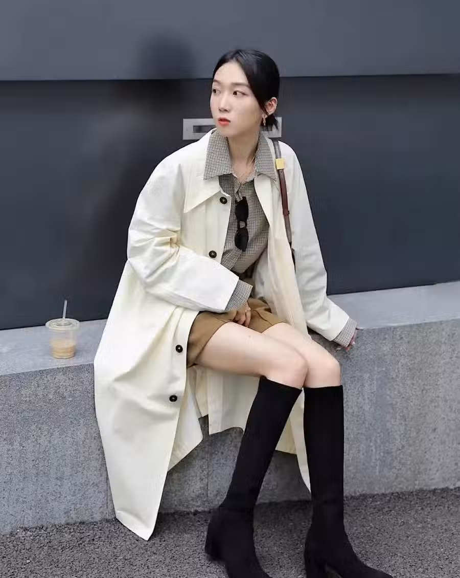 風衣+短裝+靴子是最顯氣場和顯腿長的搭配,因此建議選擇風衣和短褲、短裙搭配,再搭配長靴,自帶上移腰線和改善比例的功能,讓整體的身材變得高挑且細長。