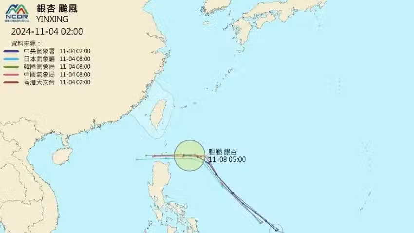 包含韓國、中國大陸的官方預測也顯示,銀杏將於3天后轉向西,穿越呂宋島、進入南海,但目前路徑仍可能變動。
