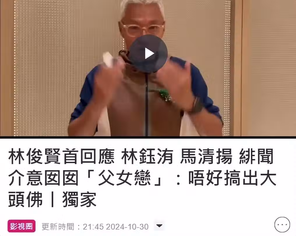 此消息很快傳到林俊賢的耳中,他在10月底回港出席活動坦言介意男方的年齡,但如果男方保養得好或許身材好,又要另眼看待,又說已跟女兒表態,讓她別搞出個「大頭佛」(麻煩)。