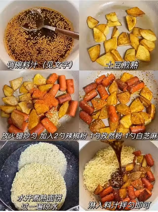 孜然火腿土豆拌面,焦香軟糯的土豆,香脆的火腿,每一根麵條上都裹滿了濃郁的醬汁,這一份拌面的快快樂誰懂呀!