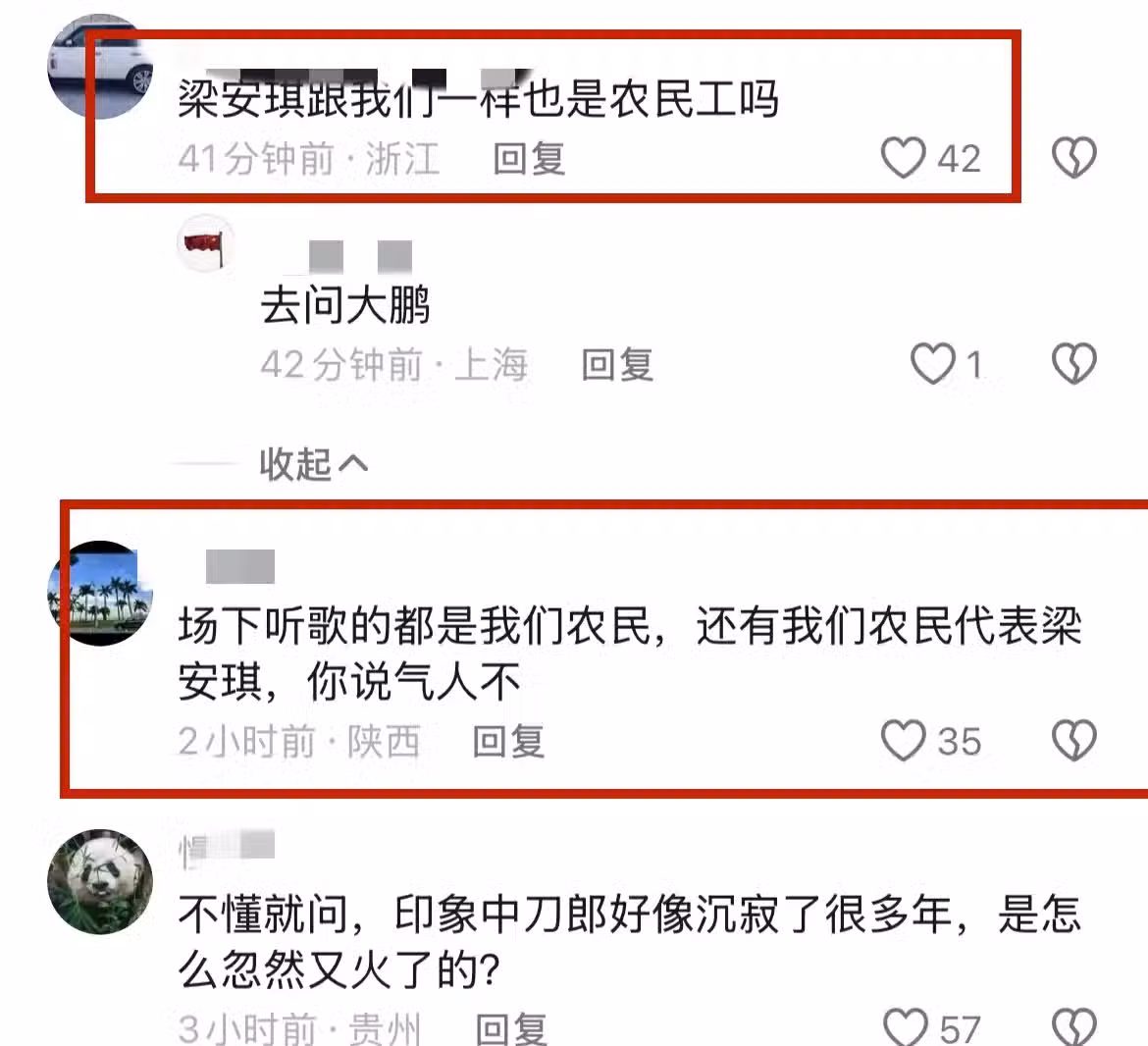 四太梁安琪現身刀郎演唱會!與普通人坐一起,網友:她也是農民工