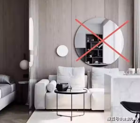 在客廳的風水布局中,沙發後牆掛鏡子是一個大忌。鏡子具有反射的作用,當你在沙發後牆掛上一面大鏡子時,實牆就會變成虛牆。