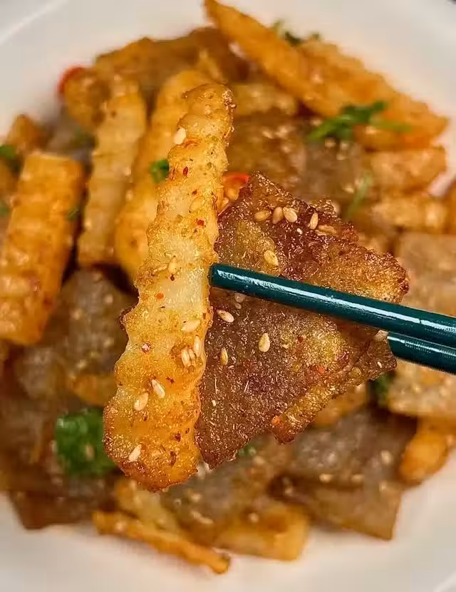 做法:熱油炸苕皮,炸至兩面起泡,油熱煎土豆,煎熟至金黃色~