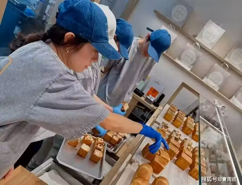 從畫面中可見,褪去藝人光環的唐詩詠打扮樸素,穿著工作服戴著帽子在店裡忙碌,店面看起來雖然不大,但設計看起來很有檔次,除了她之外,還有幾名服務人員都在接待顧客,自從開業後,生意也是相當火爆。