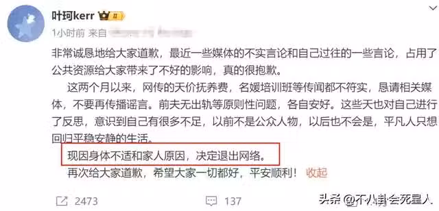 關於退網的原因,她則提到因身體不適和家人原因。而其中這個「身體不適」就比較耐人尋味了,因為據目前大眾所知,葉珂身體並沒有什麼健康問題,最令人猜想到的就是網上傳她已經懷孕的事情。