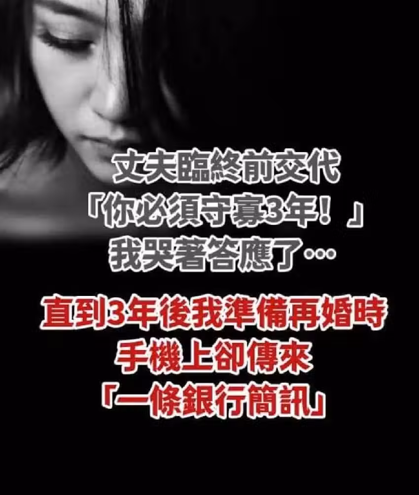 丈夫臨終前交代「你必須守寡3年!」我哭著就答應了… 直到3年後,我準備再婚時,手機上卻傳來「一條銀行簡訊」…
