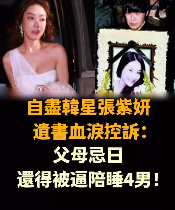 自盡韓星張紫妍遺書血淚控訴:「父母忌日,還得被逼陪睡4男!」