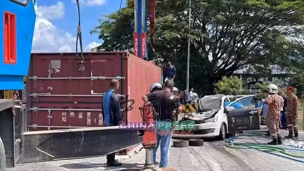 一輛貨櫃拖格羅厘疑行駛轉彎時,貨櫃失衡倒下,當場壓中兩輛轎車,其中一輛被貨櫃壓個正著的轎車,車內一名21歲華裔女子當場身亡。