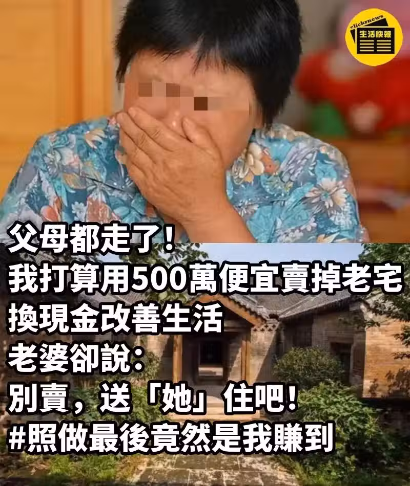 父母都走了!我打算「用500萬便宜賣掉老宅」換現金改善生活~老婆卻說:別賣,「送給她住吧」! # 照做最後竟然是我賺到