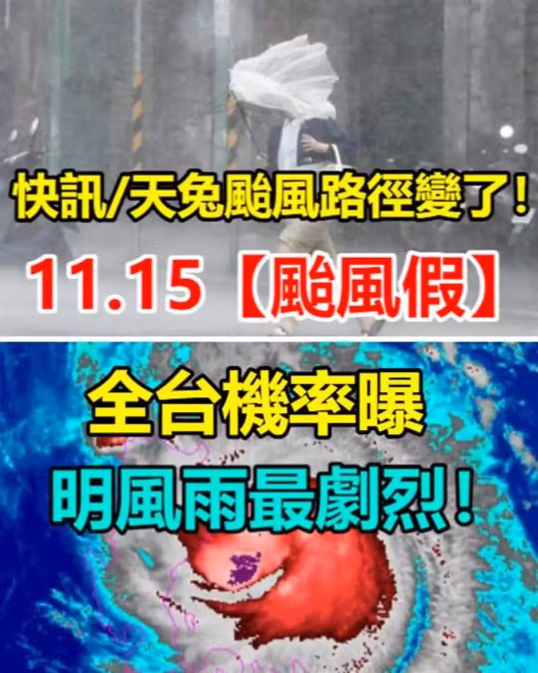 快訊/天兔颱風路徑變了!11.15全台「颱風假」機率曝!