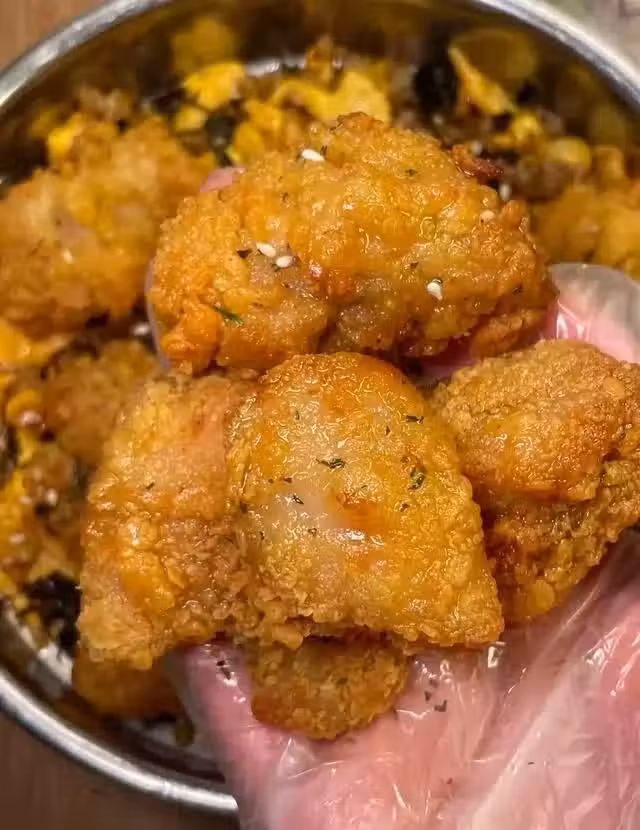 食材:雞蛋、米飯、海苔碎、半成品鹽酥雞