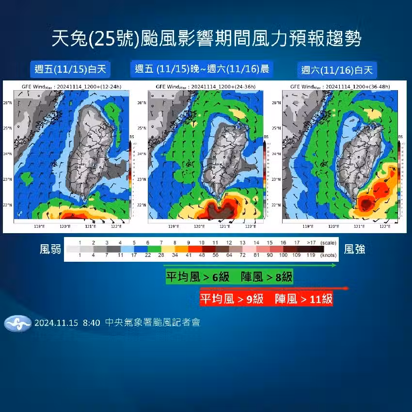 但他也提及,若以影響最大的風雨時程,包括高雄、屏東、台東、恆春半島等3縣市將成「風雨第一線」,呼籲民眾小心戒備。