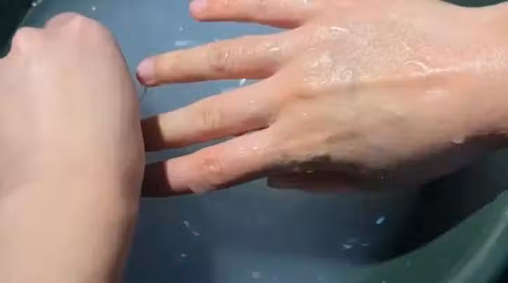 洗好後,用乾淨的毛巾或者是紙巾擦乾手上的水分。擦乾水分後,我們現在來看一下手上,這個時候你自己就能感覺到手指在伸展和捏拳頭的過程中變得非常的遊刃有餘,再也不會出現特別緊繃的感覺。