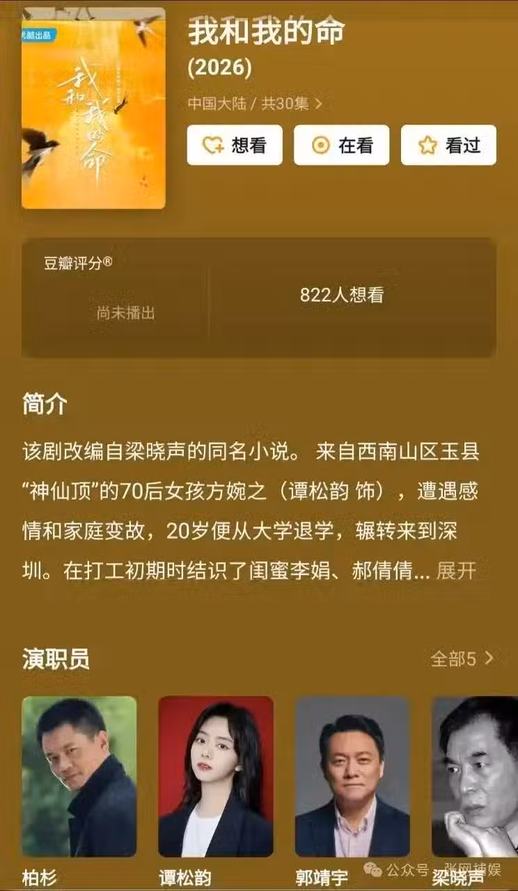 轉型力作!90後「收視女王」譚松韻新劇—《我和我的命》~