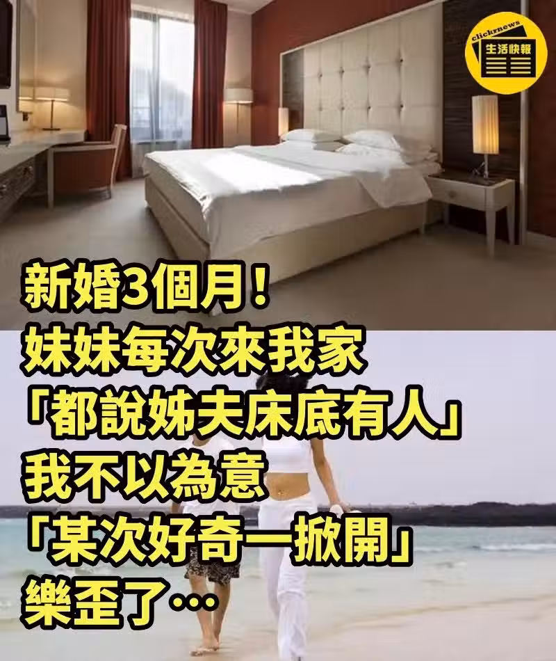 新婚3個月!妹妹每次來我家「都說姐夫床底有人」,我不以為意「某次好奇一掀開」樂歪了…