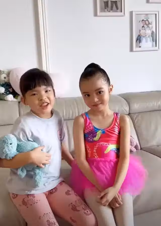 熊黛林雙胞胎女兒已顯差距,老大漂亮有才,老二被打趣只會睡覺