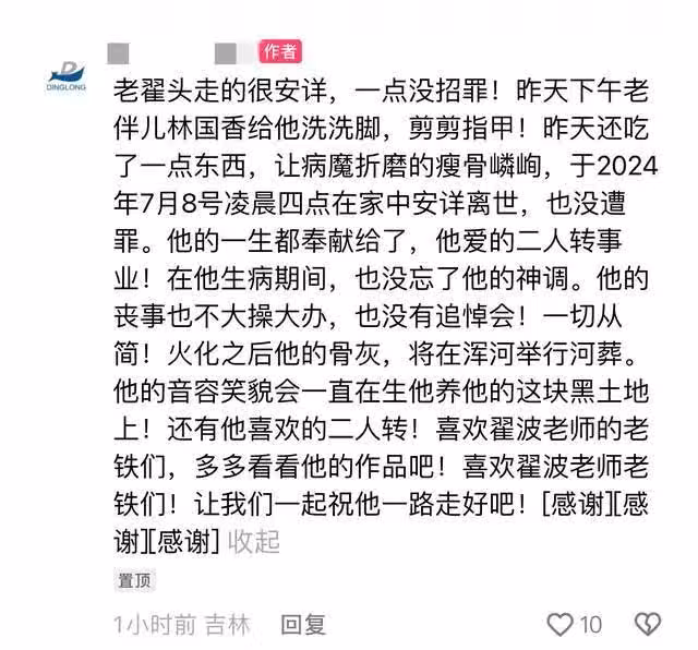 至於翟波的身後事,就如同他的晚年生活一樣,會選擇低調處理。