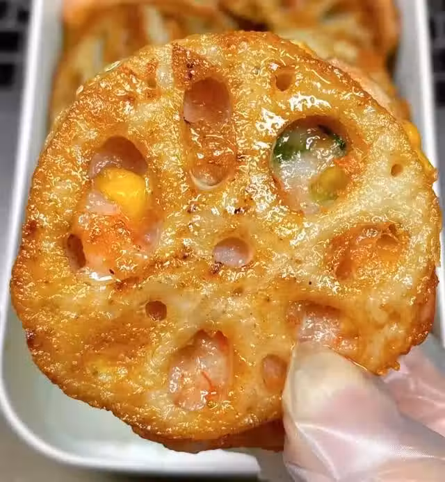 婆婆把蓮藕洗乾淨後,用刀把蓮藕切成薄片,再切成細絲。接著把蝦剝殼,去蝦線,然後用刀背把蝦肉拍成泥。在蝦泥里放入適量的鹽、料酒、生抽、蔥薑末,攪拌均勻。之後把蓮藕絲放入蝦泥中,又加入一些麵粉,麵粉起到黏合的作用,再加入少許清水,攪拌成比較黏稠的糊狀。